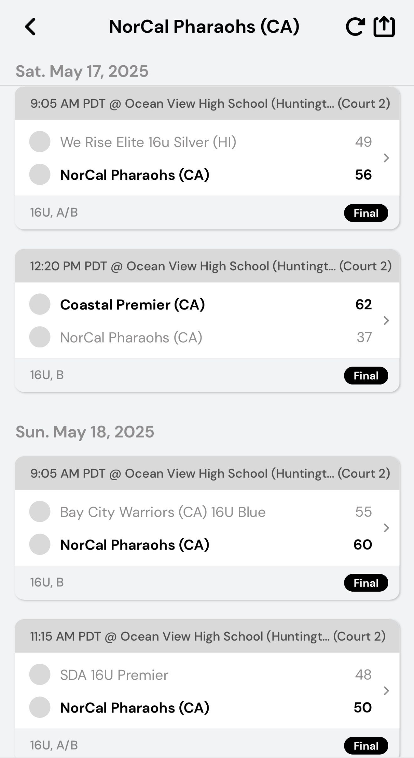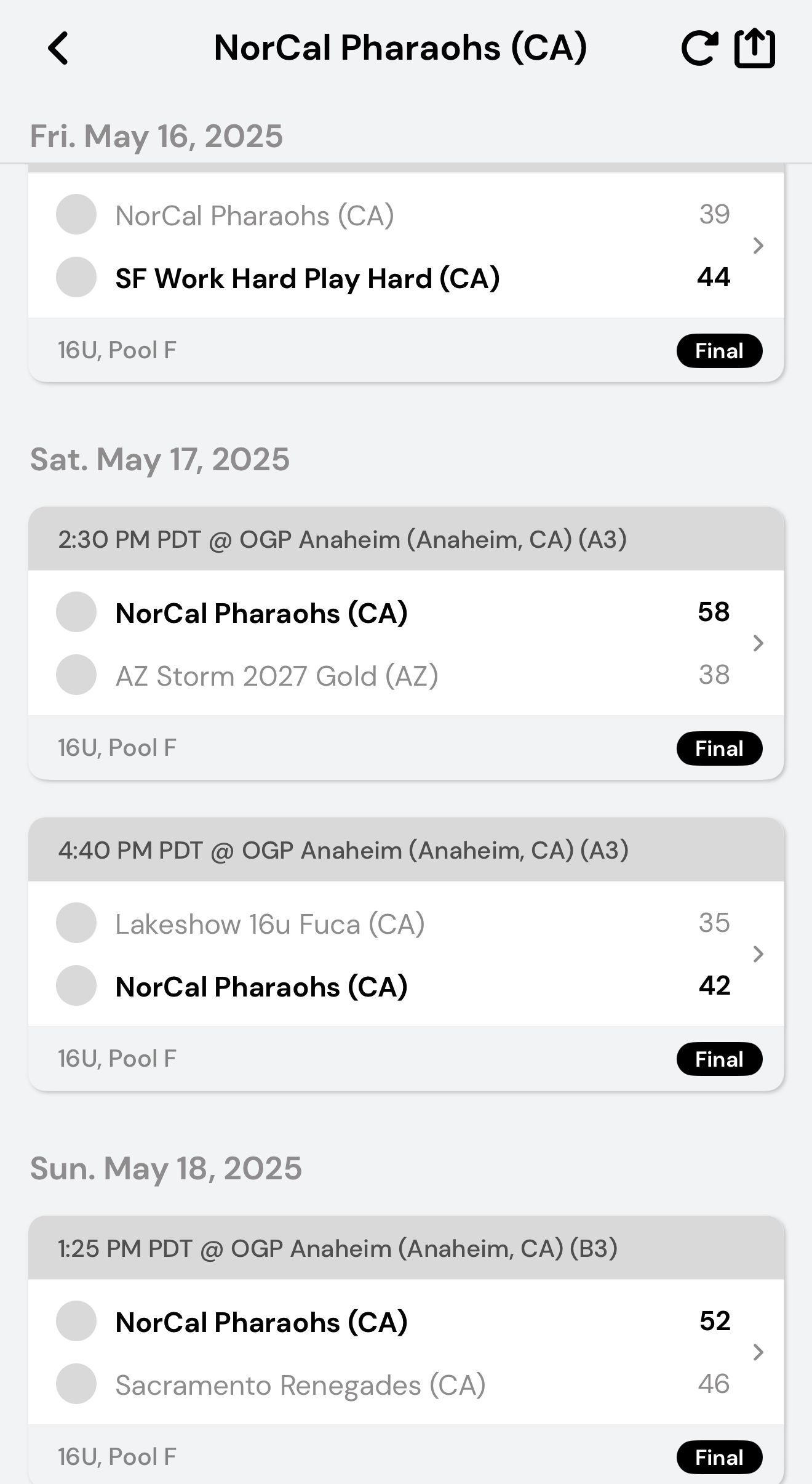 NorCal Pharaohs 16U